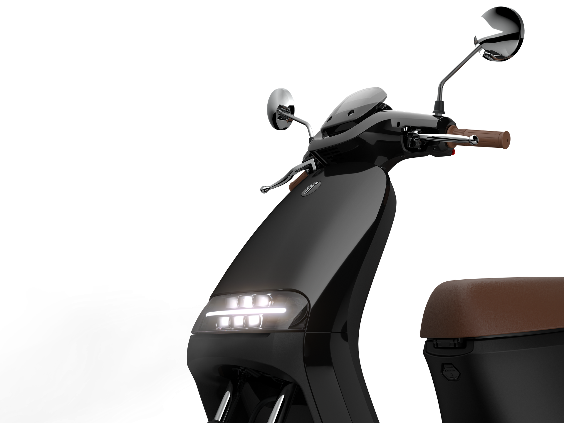 De E125S dankt haar premium look & feel aan de luxe chromen details en cognac afwerking, de grote maximaal haalbare actieradius tot wel 81 km (45 km/u versie)) en de vele functies die in de mobiele app zijn geïntegreerd. Dankzij de stille motor rijd je in alle rust en stijl naar waar je maar wilt!