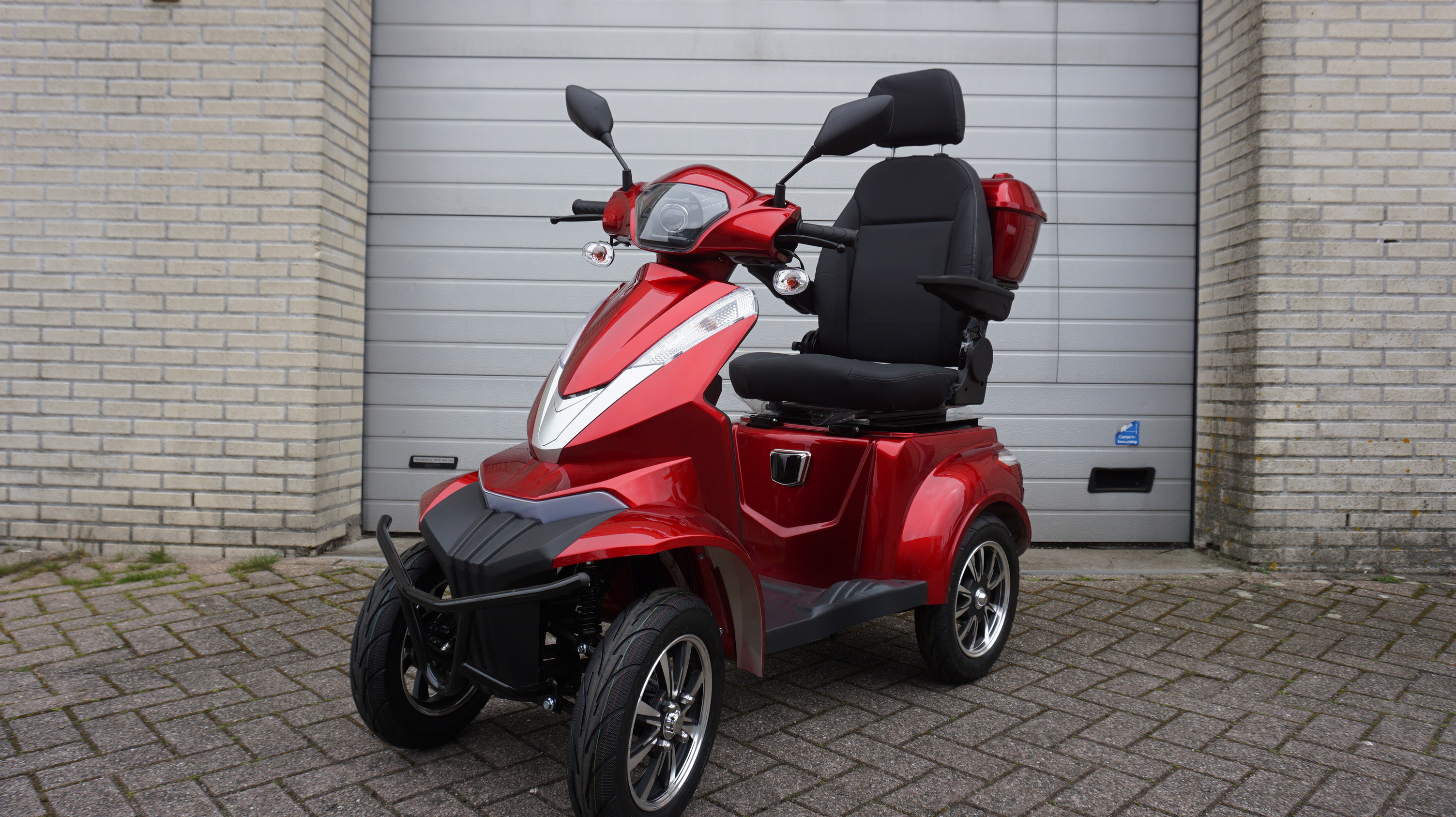 De moderne en stijlvolle scootmobiel heeft een leeggewicht van 74 kg, wat ervoor zorgt dat je in combinatie met de vier grote wielen te allen tijde stabiliteit ervaart. De krachtige motor brengt je in een razend tempo op plek van bestemming. De comfortabele captain seat zorgt ervoor dat je prettig kunt zitten tijdens jouw rit. Voor optimaal comfort kun je de armleuningen verstellen, zodat de stoel geheel aangepast kan worden naar jouw houding en wensen. Onder de stoel is opbergruimte beschikbaar om eenvoudig kleine spullen op te bergen. Daarnaast is het mogelijk om een koffer bij te bestellen, zodat je nog meer opbergruimte tot je beschikking hebt.