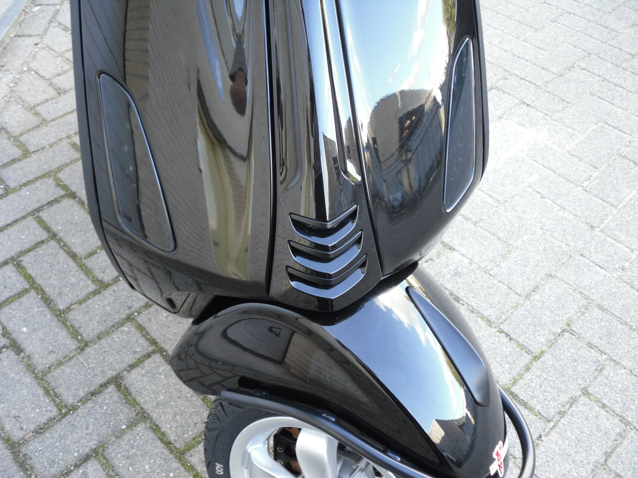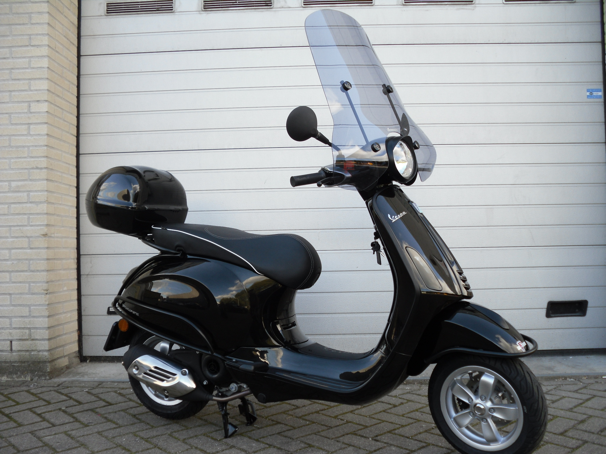 Deze Vespa Primavera Black Special is een stoere verschijning.