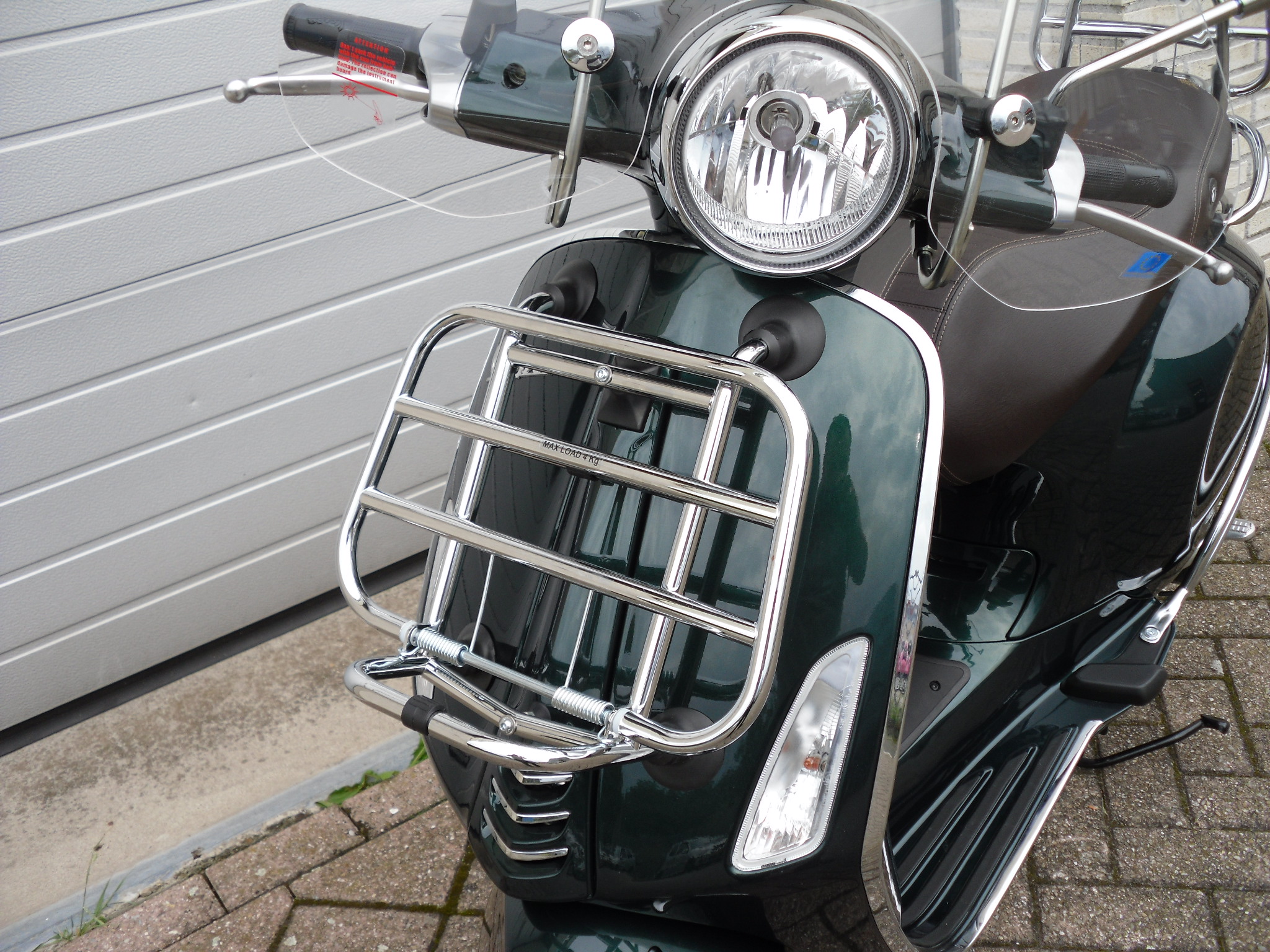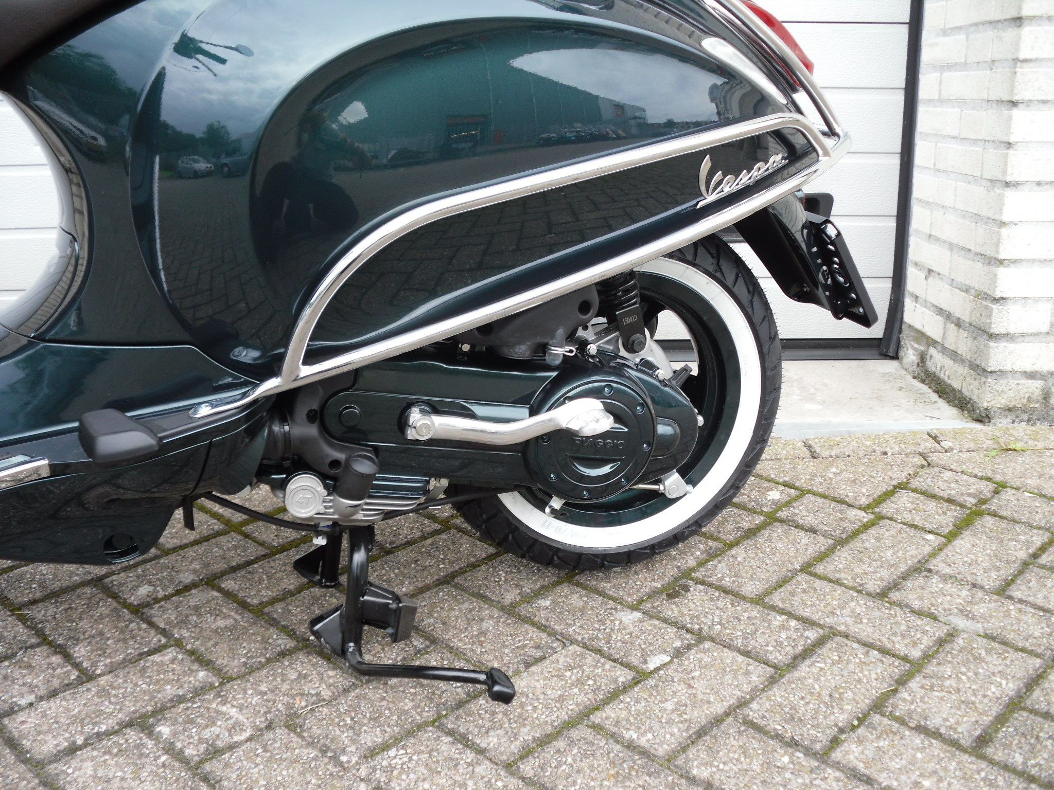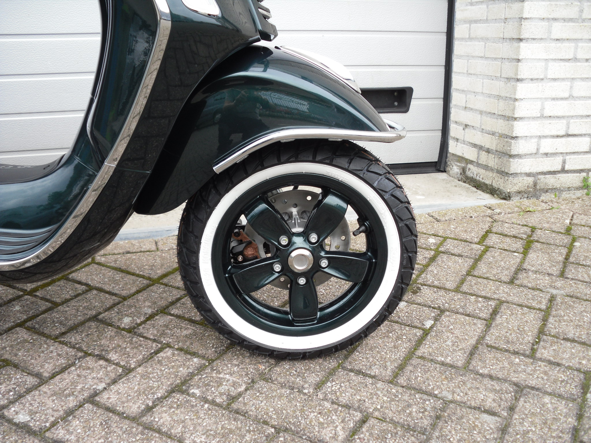 Een unieke Vespa volledig custom gespoten in een schitterende klassieke kleur, met meegepoten binnenbeplating, meegespoten velgen carterdeksel en hitteschild. White wall bandenset voor de echte retro look! Schitterend origineel bruin Vespa touring zadel. Chrome achterdrager, chrome valbeugels achter en chrome spatbordbeugel voor de chroom accenten. Originele voordrager voor de Vespa Look. Hoog windscherm.