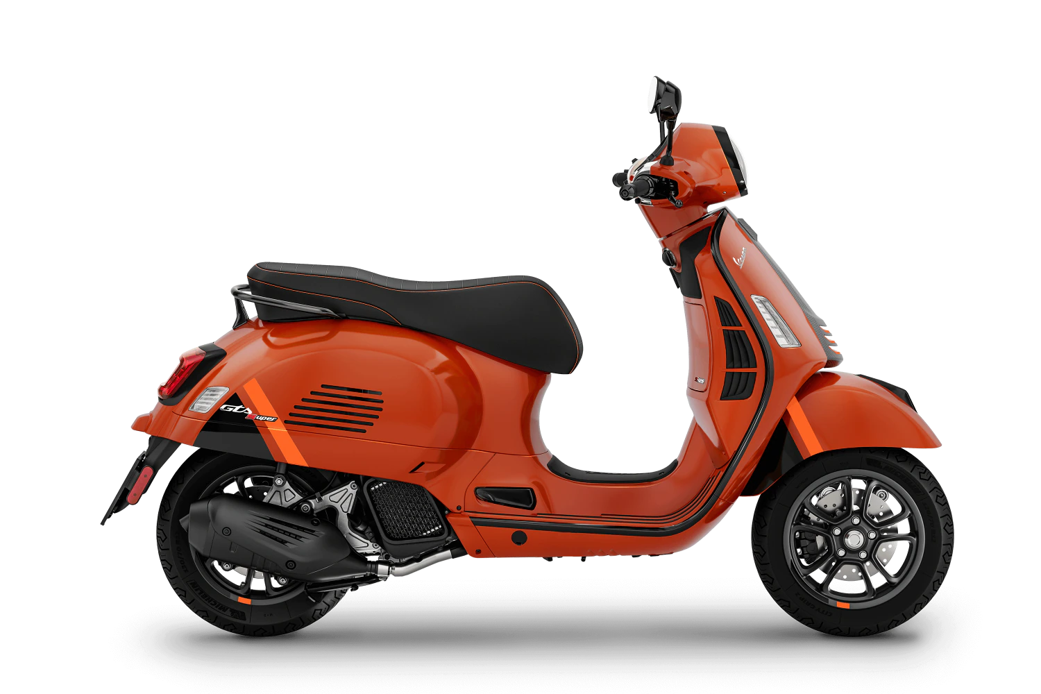 De Vespa Gts SuperSport is beschikbaar in glanzende en matte kleuren, met carbonlook inzetstukken en glanzend zwarte afwerkingen die het ruime aanbod van beschikbare liveries benadrukken. Het model is verrijkt met talrijke details, sportieve graphics en een uitstekend zadel dat opvalt door de hoge kwaliteit van de materialen en de contrasterende stiksels.