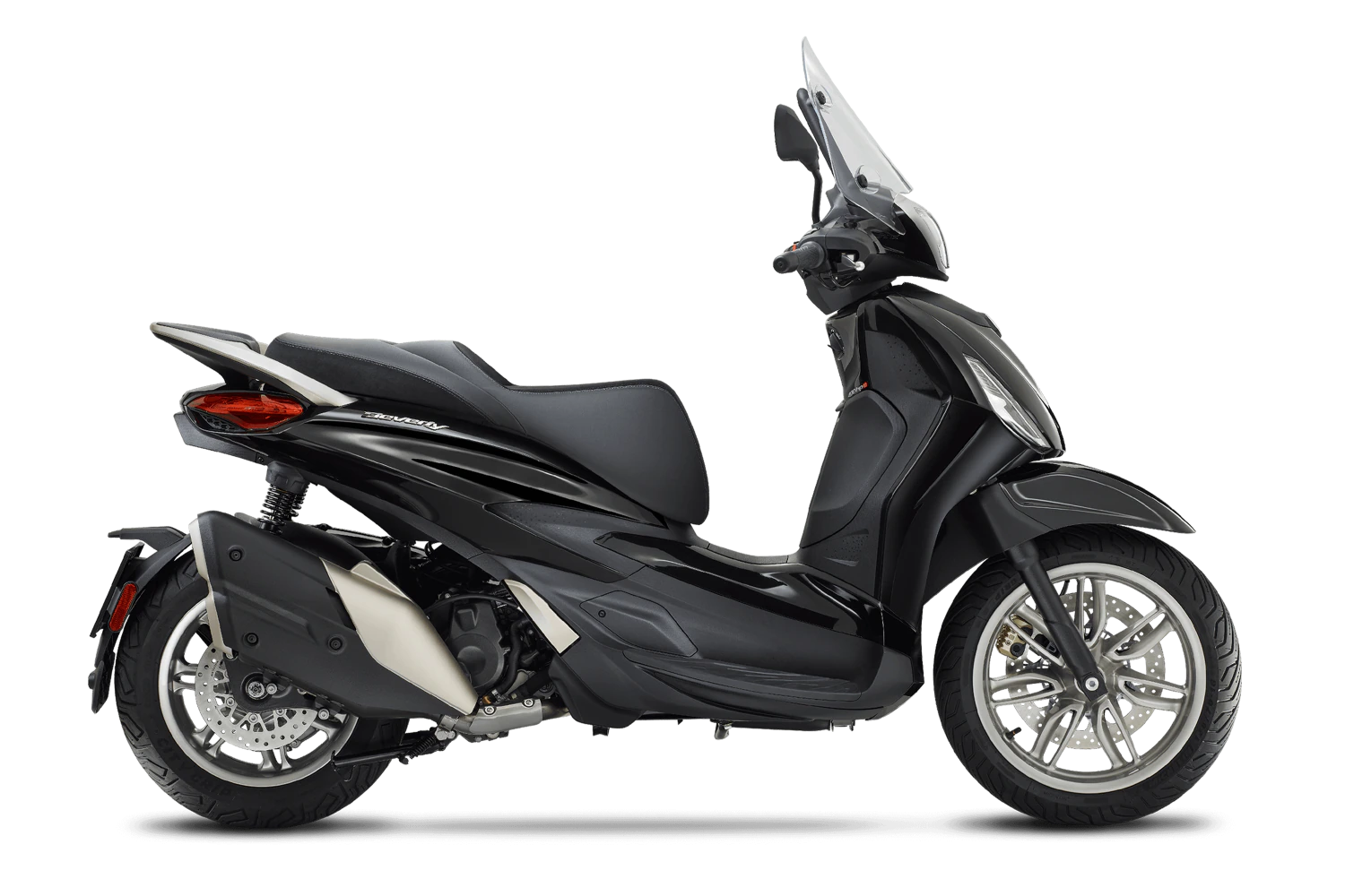 Zijn sportieve elegantie wordt bekroond door een speciale kuip en dubbele uitlaat, terwijl de combinatie van grotere banden en Piaggio MIA, die standaard is op de Beverly 400, de rijervaring naar een ander niveau tilt.
