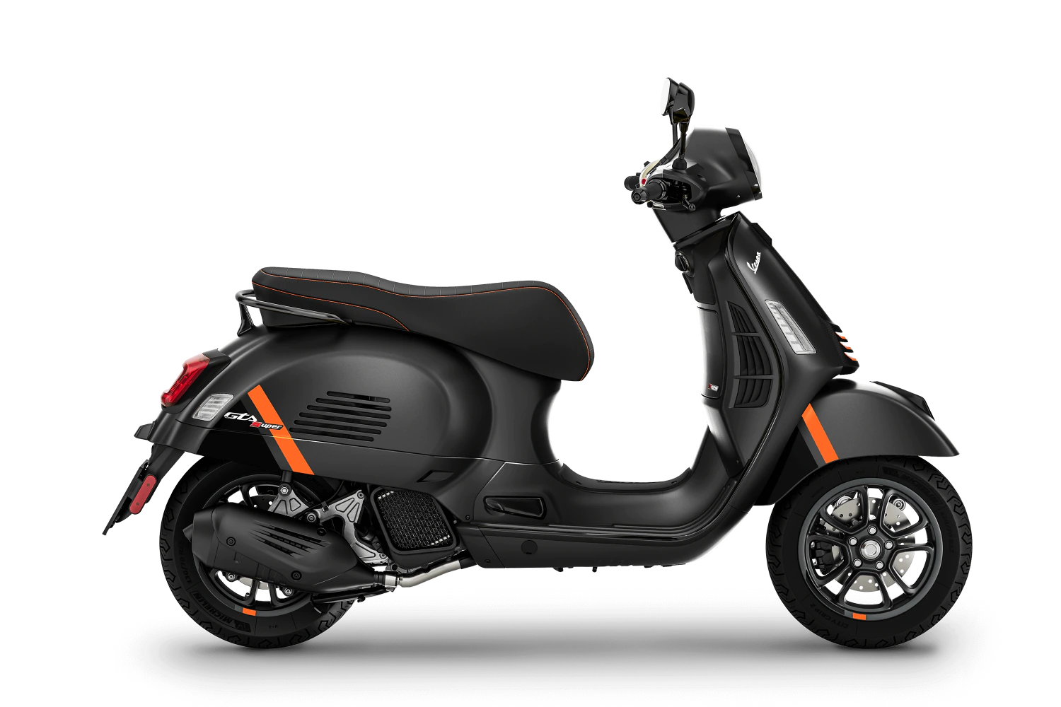 De Vespa Gts SuperSport is beschikbaar in glanzende en matte kleuren, met carbonlook inzetstukken en glanzend zwarte afwerkingen die het ruime aanbod van beschikbare liveries benadrukken. Het model is verrijkt met talrijke details, sportieve graphics en een uitstekend zadel dat opvalt door de hoge kwaliteit van de materialen en de contrasterende stiksels.