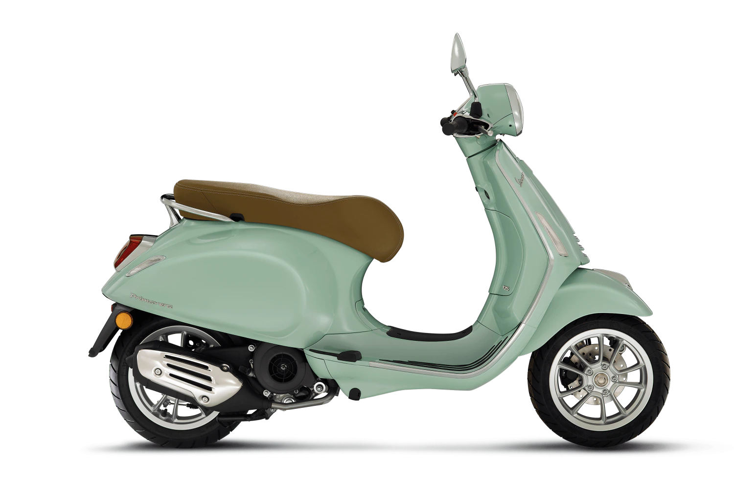 De Vespa Primavera is fris, licht, levendig, maar vooral kleurrijk! Chroomdetails en Grigio Dust grijze velgen omlijsten een gekleurde body: van de iconische Bianco Innocenza (wit) met zwart zadel tot de trendy Verde Relax (groen) met lichtbruin zadel. Een uitgebreid palet dat elk jaar wordt vernieuwd.
